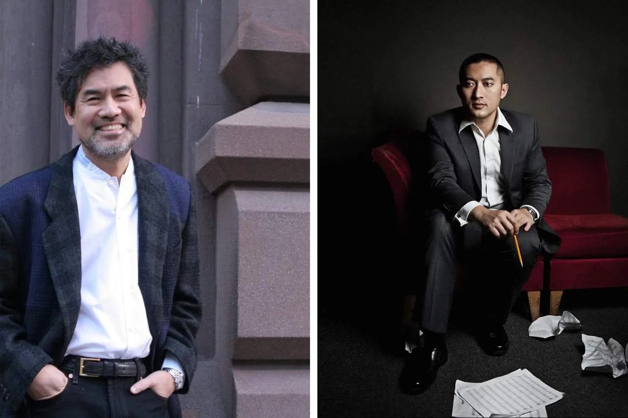 from left: Librettist David Henry Hwang and composer Huang Ruo collaborated extensively on "M. Butterfly." Photographs by Lia Chang and Wenjun Miakoda Liang.